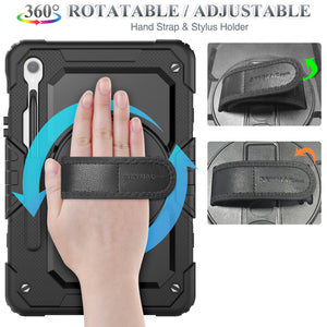 - Soft Hand Strap & Portable Shoulder Strap & Rotating Stand: Provide the protection and convenience when you play or work with Case for Galaxy Tab S10 FE / S9 FE 5G case, makes your hands-free; 360 Degrees rotating kickstand provides multi-angle landscape/portrait viewing, with soft hand strap & shoulder strap, easy to use Case for S10FE/ S9FE Tablet while outdoor travelling, working, gaming
