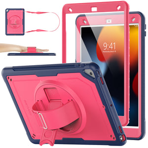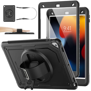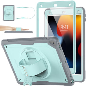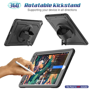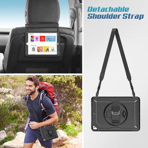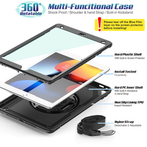 - Adjustable Hand / Shoulder Strap & 360° Rotatable Stand: Hold device safely, comfortably with soft hand strap. Adjustable/Detachable shoulder strap for a wide-range of people, easier and comfortable to carry; With rotating kickstand stands steadily at multi angles, Case for iPad 9th/ 8th/ 7th provides convenient viewing/typing angles for work, travel, or game with kids