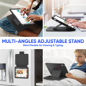 Our case features a magnetic locking system, allowing multiple angles to enhance your viewing experience.