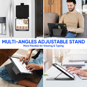 Our case features a magnetic locking system, allowing multiple angles to enhance your viewing experience.