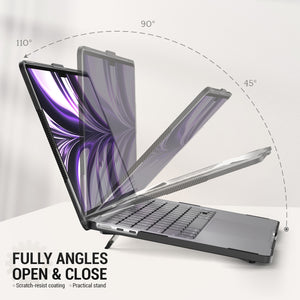 Keep your MacBook’s ports and components fully protected with precision, while the adjustable stand provides optimal viewing angles. Thoughtfully designed for easy access, the charging port ensures a seamless, hassle-free experience.