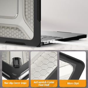 Our Honeycomb Series macbook case are designed to redefine your experience, combining style and functionality. Featuring a durable, non-slip stand, they allow for effortless angle adjustments, ensuring comfort and convenience wherever you work.