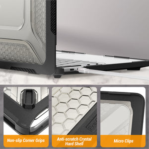 Our Honeycomb Series macbook case are designed to redefine your experience, combining style and functionality. Featuring a durable, non-slip stand, they allow for effortless angle adjustments, ensuring comfort and convenience wherever you work.
