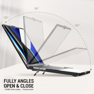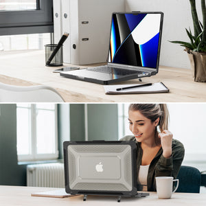 Keep your MacBook’s ports and components fully protected with precision, while the adjustable stand provides optimal viewing angles. Thoughtfully designed for easy access, the charging port ensures a seamless, hassle-free experience.