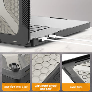 Our Honeycomb Series macbook case are designed to redefine your experience, combining style and functionality. Featuring a durable, non-slip stand, they allow for effortless angle adjustments, ensuring comfort and convenience wherever you work.