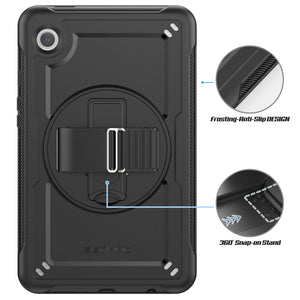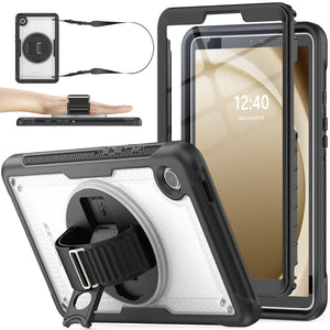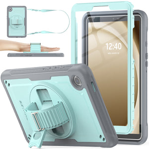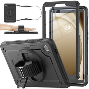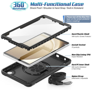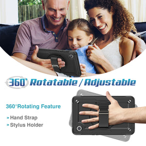 - Adjustable Hand / Shoulder Strap & 360° Rotatable Stand: Hold device safely, comfortably with soft hand strap; Adjustable/Detachable shoulder strap for a wide-range of people, easier and comfortable to carry; With rotating kickstand stands steadily at multi angles, Case for Galaxy Tab A9 Plus 8.7 inch provides convenient viewing/typing angles for work, travel, or game with kids